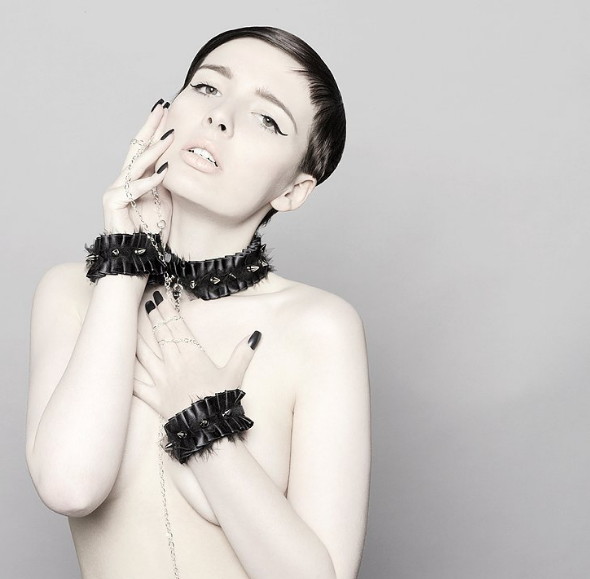 We love it when an up-and-coming designer pulls out all the stops with their catalog photos, which is just what Nicole Herman of Fraulein Kink did. The Spring 2011 collection introduces just a handful of new high-fashion fetish accessories that are striking and beautiful. Perhaps our favorite piece is the Florbelle Fringe Blindfold; we love the little crystal details along the top which actually remind us of the Chrysler Building! Of course the cuffs and collar set are striking too (equal parts naughty and sophisticated), just as we would expect from Fraulein Kink!